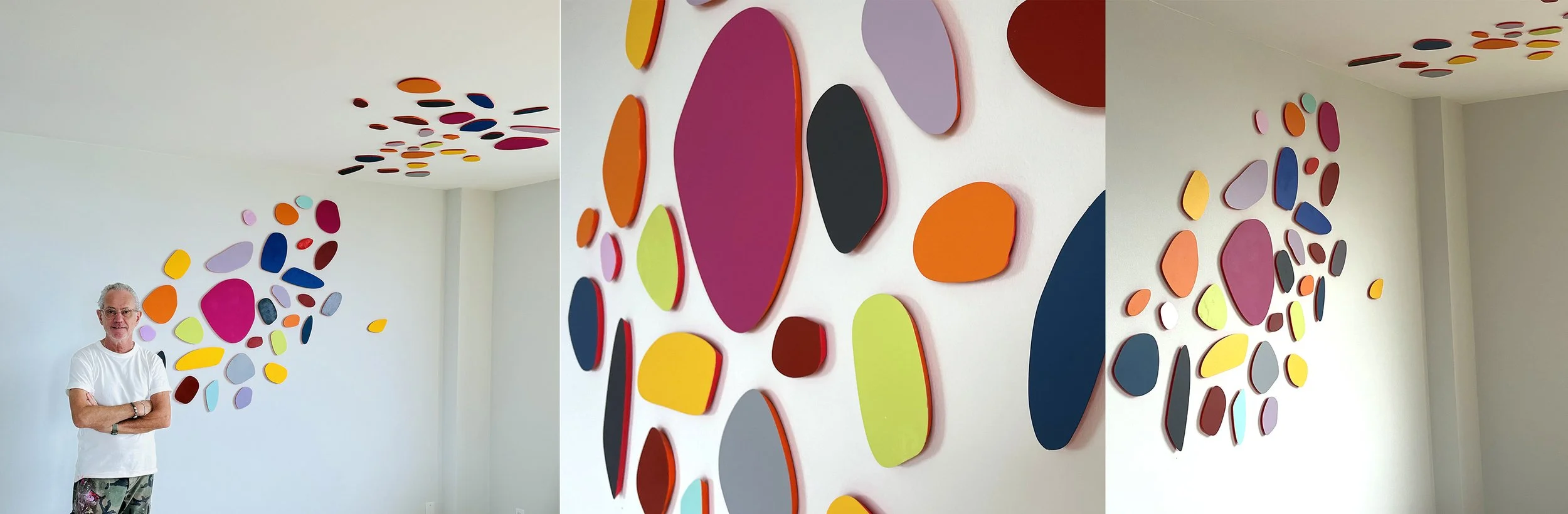 Acrylic on cutout PVC shapes - Ceiling: 55,5” x 63,5” - Wall: 76,5” x 50”