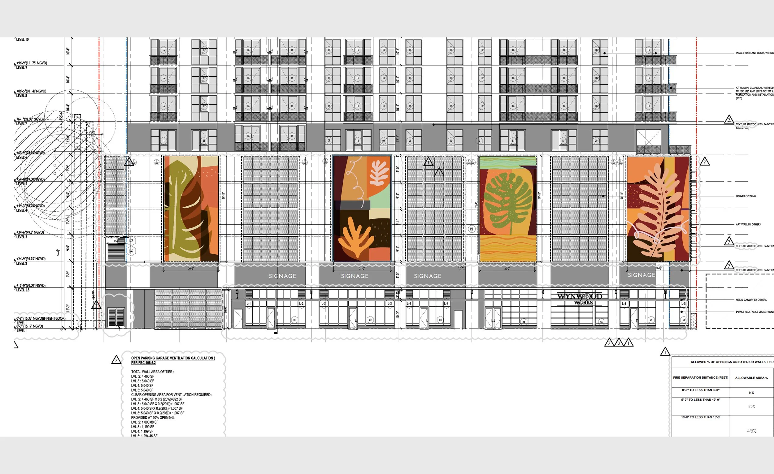 - Creation of a mural for a five-story, multi-family affordable housing development located in Cutler Bay, Miami. Each facades measuring approx. 28'8" width by 47'5" high.